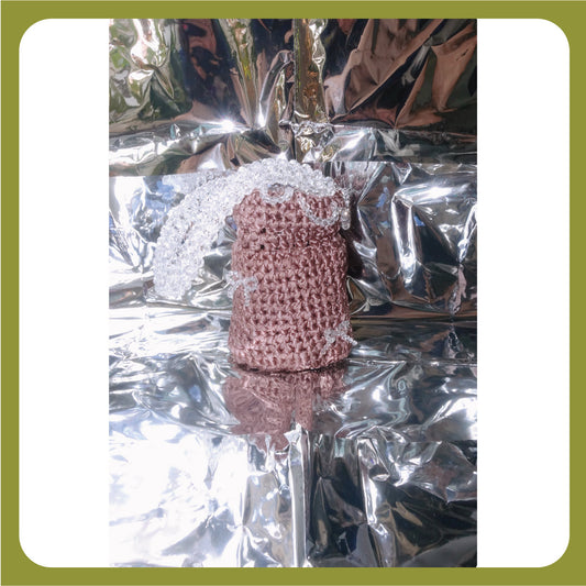 All-Handwoven Crystal Bead & Ribbon Clutch - Champagne Sculptural Vase Purse for Galas