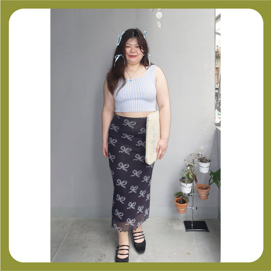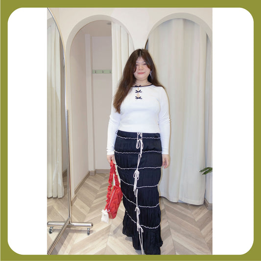 Plus Size Bow-Tiered Maxi Skirt - Textured Crinkle Skirt with Ribbon Details