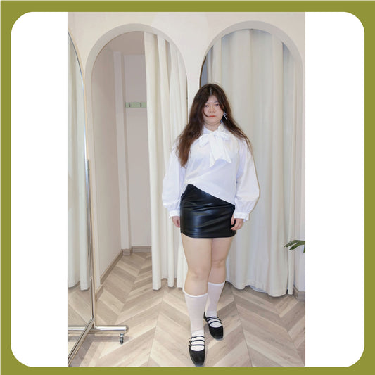 Plus-Size Black PU Faux Leather Mini — Curve-Flattering