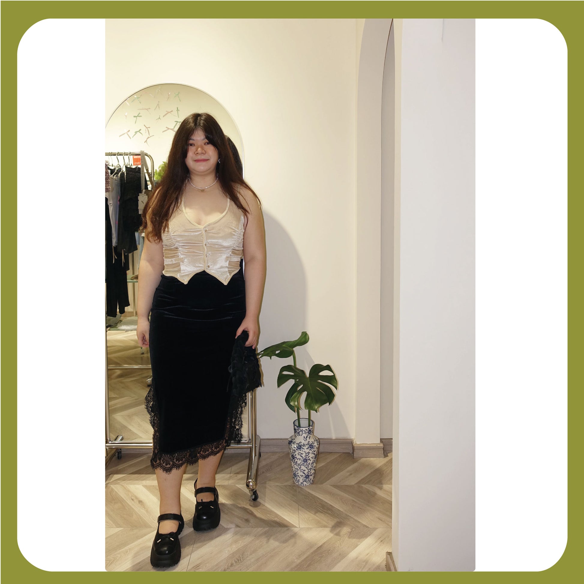 Crafted from 100% viscose velvet, this plus size halter top features a soft, silky sheen that catches the light beautifully. The ruched waist enhances curves while the button-front design adds a tailored, feminine touch. Its halter neckline elongates the shoulders, making it perfect for night-out looks, parties, or layered styling under blazers.